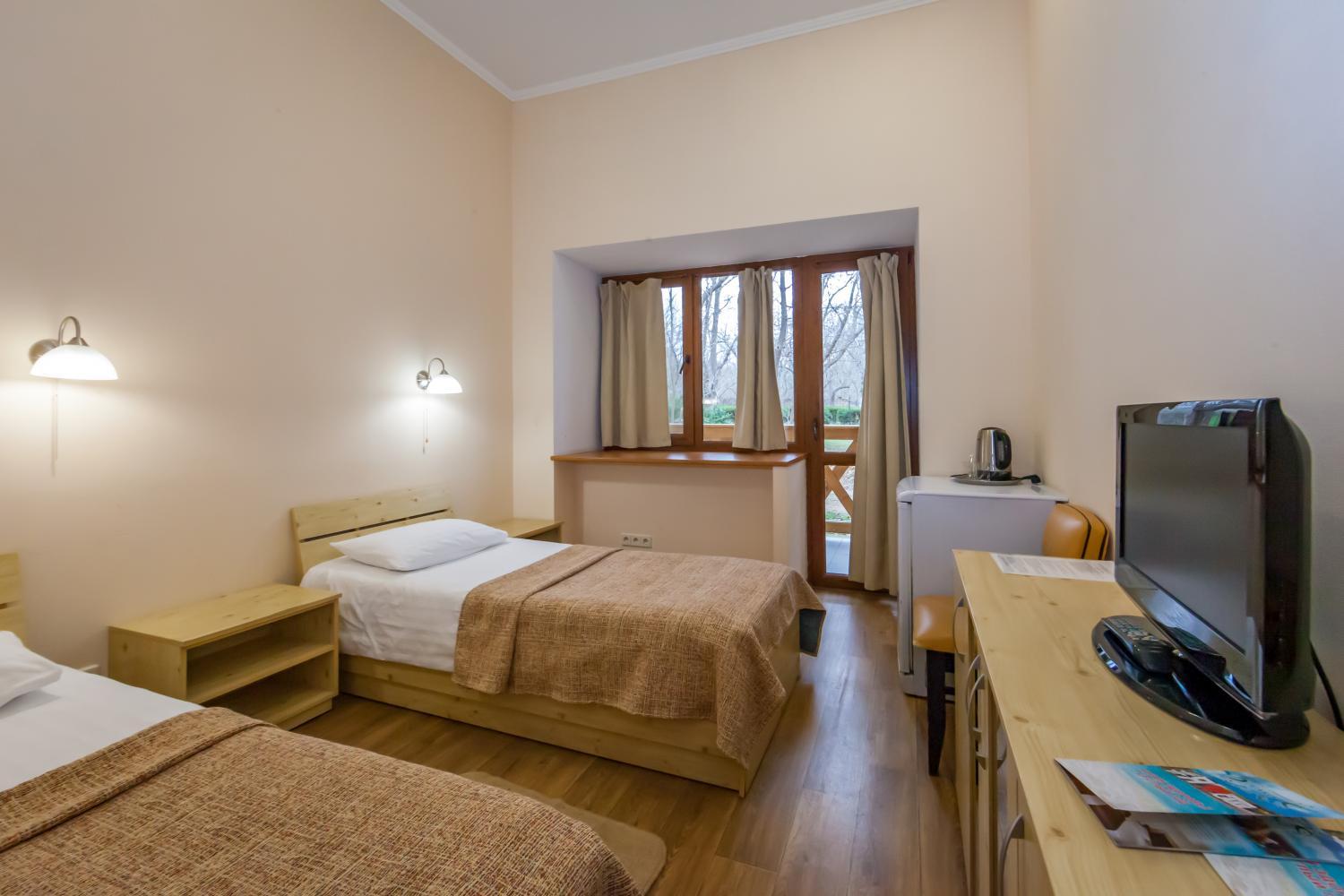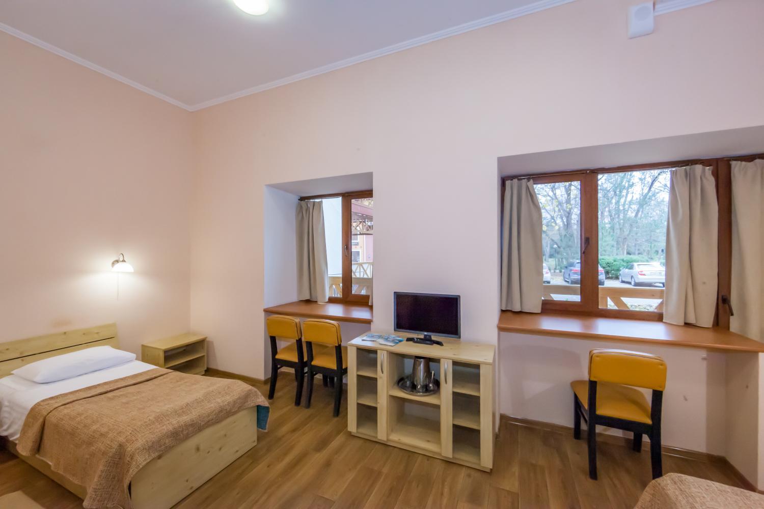 Санаторий обладает настоящим богатством в виде трех источников воды: 1) артезианская вода для питья и купания, 2) минеральная вода для питьевых курсов (собственный бювет) и купания в бассейнах, 3) сильноминерализованная лечебная вода (рапа) для лечебных ванн (строго по показаниям).